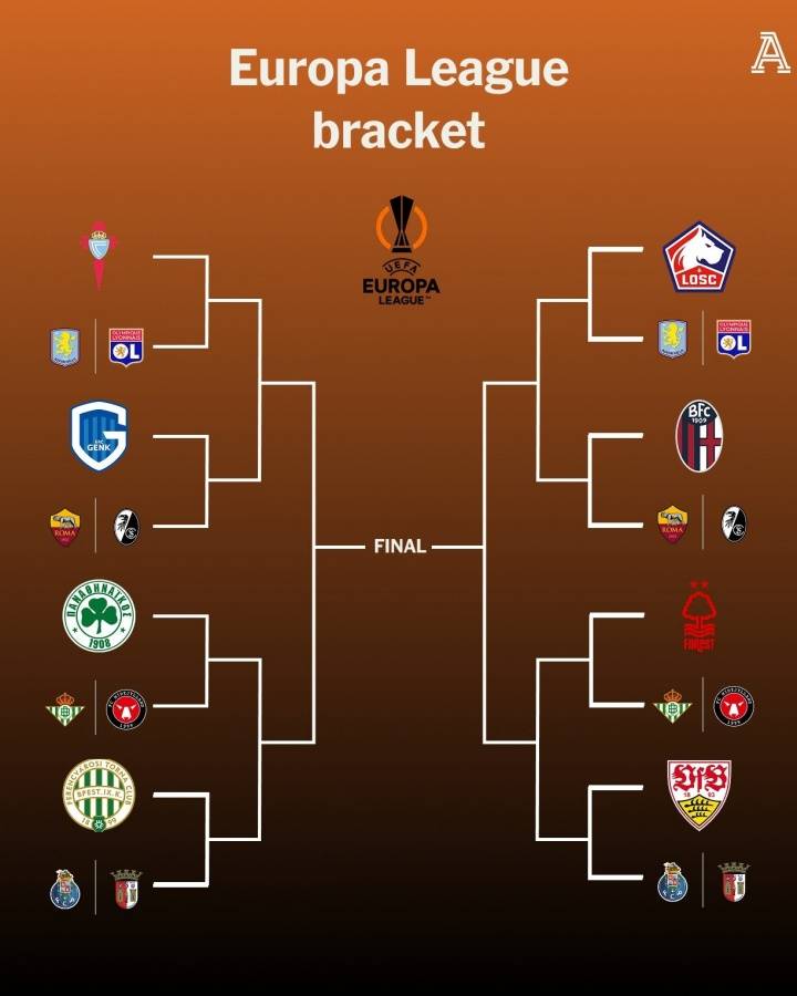 欧联杯1/8决赛潜在对阵: